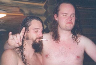 Struktur einer Rockband eher sehr konservativ veranlagt: Die Bühnenkulisse möchte ich hier noch erwähnen, denn Bühne hieß hier eine Ecke in der recht kleinen Bar mit einem großen Fenster im Hintergrund, dem Fenster zur Straße, auf der, völlig unbeeindruckt vom Klubgeschehen, das Kiezgeschäft blühte. Freier und sich Anbiedernde fanden einander, während man im Innenraum dem Gig weilte. Fuckin' weird. DEEP INSIGHT folgten, die vier jungen Finnen, alle so Anfang Zwanzig, geben recht poppig anmutenden, an HIM erinnernden, RockMetal von sich, ein Schuss melodischer HardCore, gute Songs, gute Musiker, doch leider fehlt der Kick zur Eigenständigkeit. In Finnland sagt man zu so was Southern Finnish Pop, denn eine Vielzahl von Bands, besonders aus der Region um Helsinki, wollen in irgendeiner Art und Weise an den Erfolg von Wilhelm Licht & Co. (HIM) anknüpfen. Als der Gig vorbei war, füllte sich der Klub, wie sollte es auch anders sein, es war ja Disco-Time. Das hatten wir schon mal in Köln erlebt, schon deprimierend. Aber im Klub gab es eine Besonderheit, was den finnischen Betreibern zugute zu halten ist: eine hammergeile Sauna. Sieben Finnen und meine Wenigkeit zelebrierten dort eine sich ordentlich waschende Feier, die, wie nicht anders zu erwarten, spät und ..., na ja, eben endete. (ENDSTAND und MANIFESTO JUKEBOX waren am selben Tag in Hamburg unterwegs, im HAFENKLANG, dort waren um die 200 Leute!)