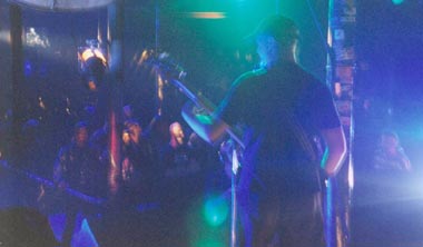 FOR EFFECT Drei Stunden zu spät. Um sechs war ausgemacht. Um neun waren wir da. Eine Stunde kollektiv verschlafen, eine Stunde vertrödelt (Es müssen sich nicht alle am Morgen tageslichttauglich zurechtbiegen!), eine Stunde im Stau gestanden. Der Klub war schon voller Leute, insgesamt waren's knapp hundert an dem Abend. Das SO WHAT ist ein cooler Laden, der in der Gegend als der Metal-Kultschuppen gehandhabt wird, klein aber fein. Gespielt wurde zu ebener Erde, ohne technische Schnörkeleien. Aufbau inmitten von Leuten. Beginn gegen elf. Ich musste mich noch um die Nahrungsbeschaffung sorgen, in einem Hamburger-Restaurant, das durch verwandtschaftliche Verhältnisse mit dem Besitzer der Metal-Kneipe verbunden ist. Die Bedienung, eine standardgemäße und (schon ansehnlich) arschwackelnde Blondine, überraschte mich gleich mit der Frage: "Sind Sie von der Band?" Als ich ihr dann klargemacht hatte, dass ich irgendwie dazugehöre, kam gleich der nächste Hammer: "Und die Finnen sind extra für das Konzert von Finnland gekommen?" Na klar, Schätzchen. MONSOON